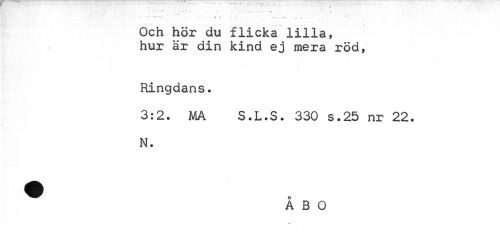 //// ' ¦ ? ^ //// T t t T * - --- y T ¦ //// Och hör du flicka lilla, hur ar din kind ej mera röd, //// Ringdans. //// 3:2. MA S.L.S. 330 s.25 nr 22. N. //// ÅBO ////
