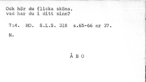 //// Och hör du flicka sköna, vad har du i ditt sinn? //// 7:4. HO. S.L.S. 318 s.65-66 nr 37. N. //// ÅBO ////