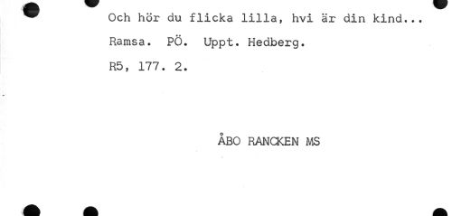 //// Och hör du flicka lilla, hvi är din kind... //// Ramsa. PÖ. Uppt. Hedberg. R5, 177. 2. //// ÅBO RANCKEN MS ////