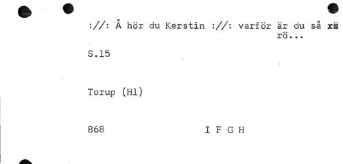//// ://: A hör du Kerstin ://: varför är du så ris //// rö ? ?. //// S. 15 //// * //// \ //// * //// Torup (Hl) //// 868 I F G H ////