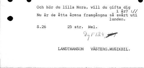 //// Och hör du lilla Nora, vill du giftaodig //// i år? :// //// ^^ Nu är de åtta årena framgångna så svårt uti //// lunden. //// S.26 25 str. Mel. //// LANDTMANSON VÄS TE RG. MUS IKBIL. ////