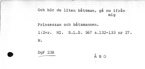 //// "f r ' (' //// Och hör du liten båtsman, gå nu ifrån //// mig //// Prinsessan och båtsmannen. //// 1:2+r. Hl. S.L.S. 367 s.132-133 nr 27. //// N. //// 0 DgF 238 ////