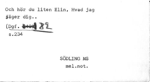 //// I //// Och hör du liten Elin, Hvad jag §äger dig.. //// (Dgf. 3tlL //// s .234 //// i //// i ? //// i //// { //// i ' i 1 //// i » //// i « //// i //// i //// SODLING MS //// i //// mel.not. ////