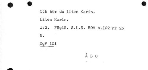 //// Och hör du liten Karin. Liten Karin. //// 1:2. Föglö. S.L.S. 508 s.102 nr 26 N. //// DgF 101 //// ÅBO ////