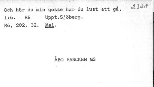//// o A IJ^ //// Och hör du min gosse har du lust att gå, 4 1:6. RE Uppt.Sjöberg. R6, 202, 32. Mel. //// ÅBO RANCKEN MS //// v ' ' p ////