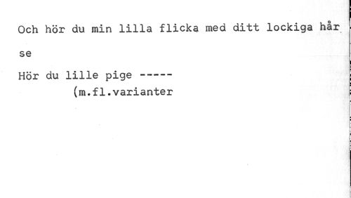 //// I i //// Och hör du min lilla flicka med ditt lockiga hår ¦ se //// i //// Hör du lille pige---j //// r //// (m.fl.varianter f //// i I //// i i //// t f ////