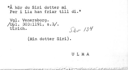 //// WÅ hör du Siri dotter mi Per i Lia han friar till di.11 //// Vgl. Venersborg. /Upl. 303:1191, s.3/. //// Ulrich. JV M //// (Min dotter Siri). //// U L M A //// » //// m /v '/'i, ' ' ... • : M» > 'ism^nfé //// ^ / -/fwA^,^^^, V^juM^ ' -V^r^f ii .i,,,. -,.,. -' " ////