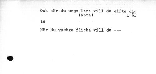 //// ' . • - v •* //// Och hör du unge Dora vill du gifta dig //// (Nora) i år //// se //// Hör du vackra flicka vill du --- ////