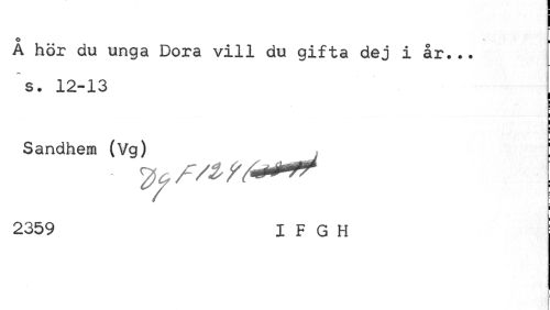 //// ! //// Å hör du unga Dora vill du gifta dej i år... s. 12-13 //// I //// ¦ //// ¦ //// Sandhem (Vg) //// y* f/s- j //// i //// 2359 IFGH //// 1 ////