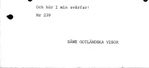 //// Och hör I min svärfar: ^ Nr 239 //// SÄWE GOTLÄNDSKA VISOR //// ' - f u ////