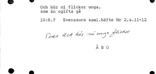 //// Och hör ni flickor unga, som än ogifta gå //// 10:8.? Svenssons saml.häfte Nr 2.s.11-12 //// tu* *** ^ //// ÅBO ////