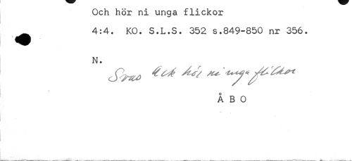 //// Och hör ni unga flickor Ä 4:4. KO. S.L.S. 352 s.849-850 nr 356. //// N. //// t //// ÅBO ////
