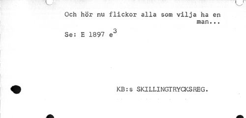 //// Och hor nu flickor alla som vilja ha en //// man... //// Se: E 1897 e3 ^ KB:s SKILLINGTRYCKSREG. ////