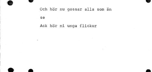 //// Och hör nu gossar alla som än se //// Ack hör ni unga flickor //// v ////
