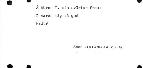 //// A hören I, min svärfar from: I våren mig så god Nr 239 //// 0. //// SÄWE GOTLÄNDSKA VISOR ////