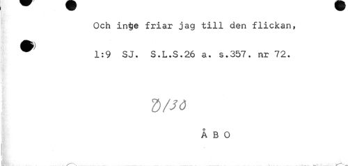 //// Och in$e friar jag till den flickan, 1:9 SJ. S.L.S.26 a. s.357. nr 72. //// d/sd //// ÅBO ////