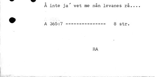 //// A inte ja vet me nan levanes ra... //// rf*. //// A 365:7 --- 8 str. //// RA ////