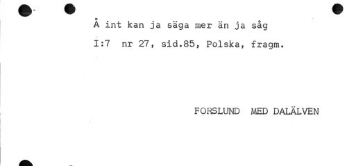 //// o Q //// A int kan ja säga mer än ja sag 1:7 nr 27, sid.85, Polska, fragm. //// FORSLUND MED DALÄLVEN ////