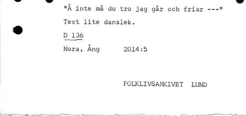 //// 11A inte ma du tro jag går och friar---w //// Text lite danslek. D 136 //// Nora, Ång 2014:5 //// •K //// FOLKLIVSARKIVET LUND ////