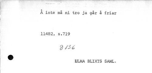//// »"«¦•> «(,. ~ fin -- ___ //// ö //// A inte må ni tro ja går å friar 11482, s.719 //// ULMA BLIXTS SAML. ////