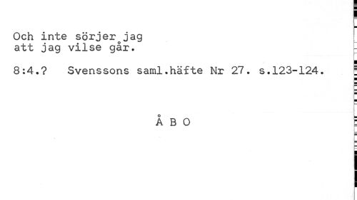 //// Och inte sörjerojag //// att jag vilse går. _ //// i //// 8:4.? Svenssons saml.häfte Nr 27. s.123-124. j //// ¦ //// l //// r //// b //// v //// ÅBO E //// I ////