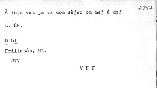 //// -- . - ...w - ¦...- //// A inte vet ja va dom säjer om mej a dej //// \ I //// I //// s. 68. D 51 //// Frillesås, HL. 377 //// V F F //// ¦ ////