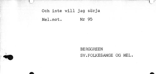 //// Och inte vill jag sörja Mel.not. Nr 95 //// BE RGGREEN //// SV. FOLKES ANGE OG MEL. ////