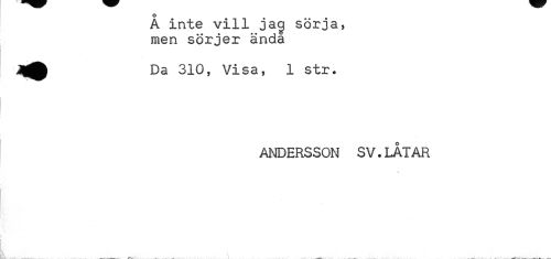 //// o //// A inte vill jaej sörja, men sörjer ända //// Da 310, Visa, 1 str. //// ANDERSSON SV. LATAR ////