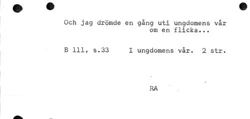 //// Och jag drömde en gång uti ungdomens vår //// om en flicka... //// B 111, s.33 I ungdomens vår. 2 str. //// RA ////