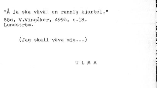 //// J //// "A ja ska vävä en rannig kjortel." Söd, V.Vingåker, 4995, s.18. //// Lundström. , //// 1 ¦ //// ¦ I //// I //// (Jag skall väva mig...) "> //// \ //// i //// U L M A i //// I i ////
