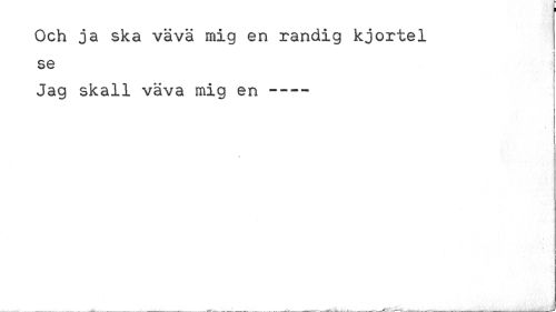 //// Och ja ska väva mig en randig kjortel se j //// Jag skall väva mig en —— //// X //// - ... . I ' . . ¦ lUt ////
