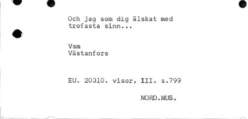 //// Och jag som dig älskat med trofasta sinn... //// an //// Vsm //// Västanfors //// EU- 20310. visor, III. s.799 //// NORD.MUS. ////