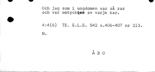 //// Och jag som i ungdomen var så rar och var omtyckte® av varje kar. //// 4:4(6) TE. S.L.S. 542 s.406-407 nr 213. N. //// ÅBO ////