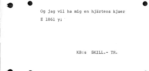 //// Og jag vil ha mig en hjärtens kjaer E 1861 y; //// KB:s SKILL.- TR. ////