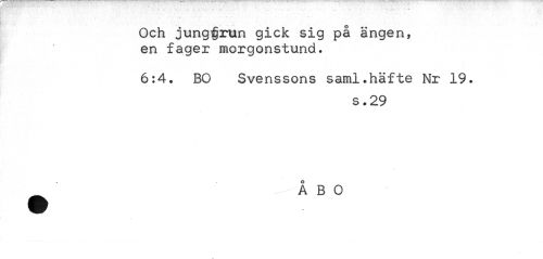 //// Och jungfjrun gick sig på ängen, en fager morgonstund. //// 6:4. BO Svenssons saml.häfte Nr 19. //// s .29 //// ' ÅBO ////
