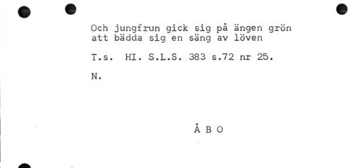//// Och jungfrun gick sig på ängen grön att bädda sig en säng av löven //// T.s. Hl. S.L.S. 383 s.72 nr 25. //// N. //// ÅBO ////