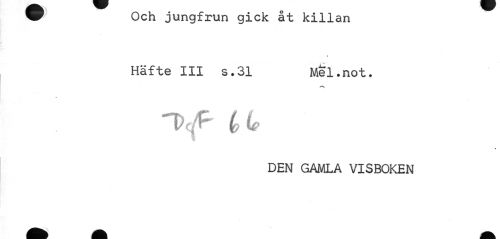 //// W Och jungfrun gick at killan //// Häfte III s.31 Mel.not. //// a //// a //// DEN GAMLA VISBOKEN ////