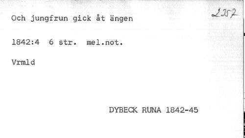 //// J[JSl //// Och jungfrun gick åt ängen ' //// ¦ //// i //// 1842:4 6 str. mel.not. Vrmld //// DYBECK RUNA 1842-45 I ////