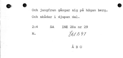 //// Och jungfrun gångar sig på högan berg, Och skådar i djupan dal. //// 2:4 SA INE 28a nr 29 //// N • fyt& 97 //// o //// A B O ////