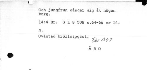 //// W W //// Och jungfrun gångar sig åt högan berg. //// 14:4 Br. S L S 508 s.64-66 nr 14. //// % //// N. //// Oväntad bröllospgäst. //// u/tit? //// ÅBO ////