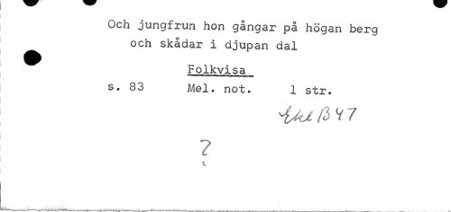 //// Och jungfrun hon gångar på högan berg och skådar i djupan dal //// ^ Folkvisa //// s. 83 Mel. not. 1 str. //// ? //// t //// • • . XV . _ ___^ . ___-___ . x ___. . .. - ...___ .. .. _ w..-. JVyyw^, rev* --—---—-¦—»*'•—— ---— ////