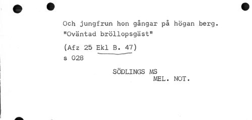 //// Och jungfrun hon gångar på högan berg. "Oväntad bröllopsgäst" //// (Afz 25 Ekl B. 47) s 028 ~ ... //// SÖDLINGS MS //// MEL. NOT. ////