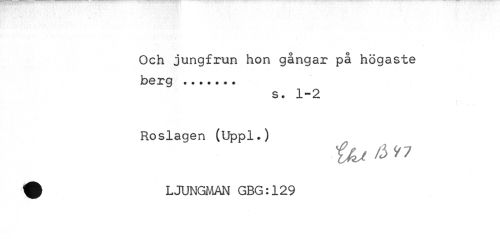 //// Och jungfrun hon gångar på högaste berg //// s • 1 //// Roslagen (Uppl.) //// tlu /3 n //// % LJUNGMAN GBG:129 ////