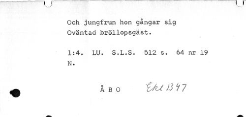 //// Och jungfrun hon gångar sig Oväntad bröllopsgäst. //// K/ //// 1:4. LU. S.L.S. 512 s. 64 nr 19 N. //// ^ ÅBO Vatt Ii ////