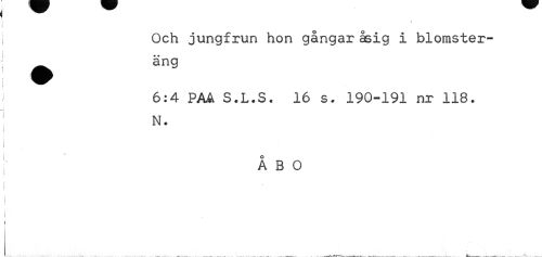 //// Och jungfrun hon gångar åsig i bloraster-äng //// 6:4 PM S.L.S. 16 s. 190-191 nr 118. N. //// i //// » //// ÅBO ////