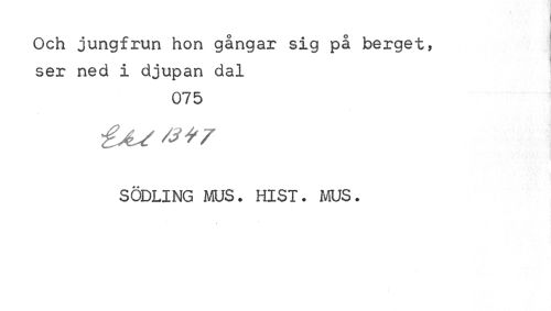 //// Och jungfrun hon gangar sig pa berget, ser ned i djupan dal //// 075 //// SÖDLING MUS. HIST. MUS. ////