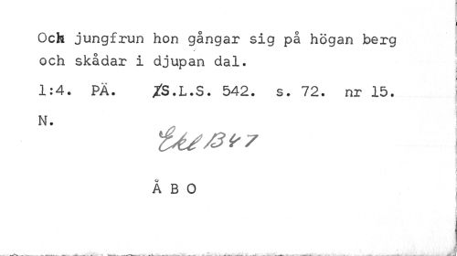 //// Och jungfrun hon gångar sig på högan berg och skådar i djupan dal. //// r //// 1:4. PÄ. /S.L.S. 542. s. 72. nr 15. N. //// ÅBO ////