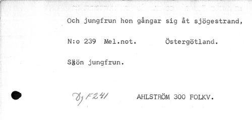 //// Och jungfrun hon gångar sig åt sjögestrand, N:o 239 Mel.not. Östergötland. //// Sgön jungfrun. //// ® Hj AHLSTRÖM 300 FOLKV. ////