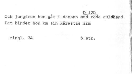 //// 1 //// D 125. | //// Och jungfrun hon går i dansen med röda guldband i Det binder hon om sin kärestas arm //// ringl. 34 5 str. i //// i I { //// ¦ ////