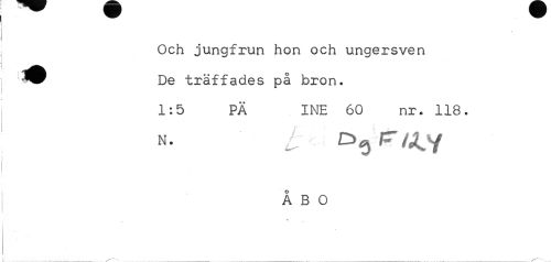 //// Och jungfrun hon och ungersven //// De träffades pa bron. //// 1:5 PÄ INE 60 nr. 118. //// n. / o $ r/^y //// ÅBO ////